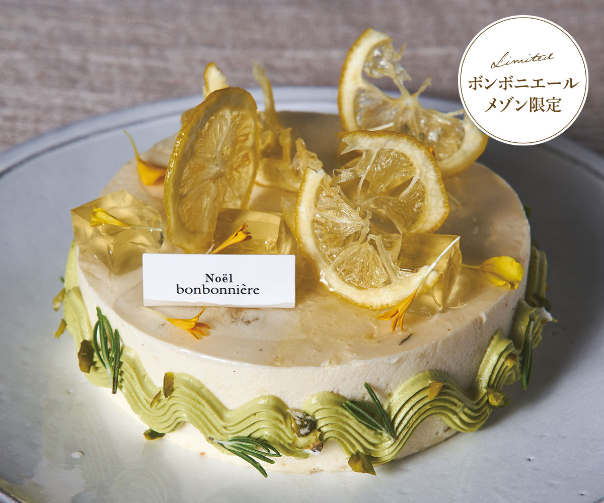 はちみつのやさしい甘さをまとったムースに、レモンとローズマリーが香るはちみつナッツを重ね、爽やかなレモンクリームを合わせました。