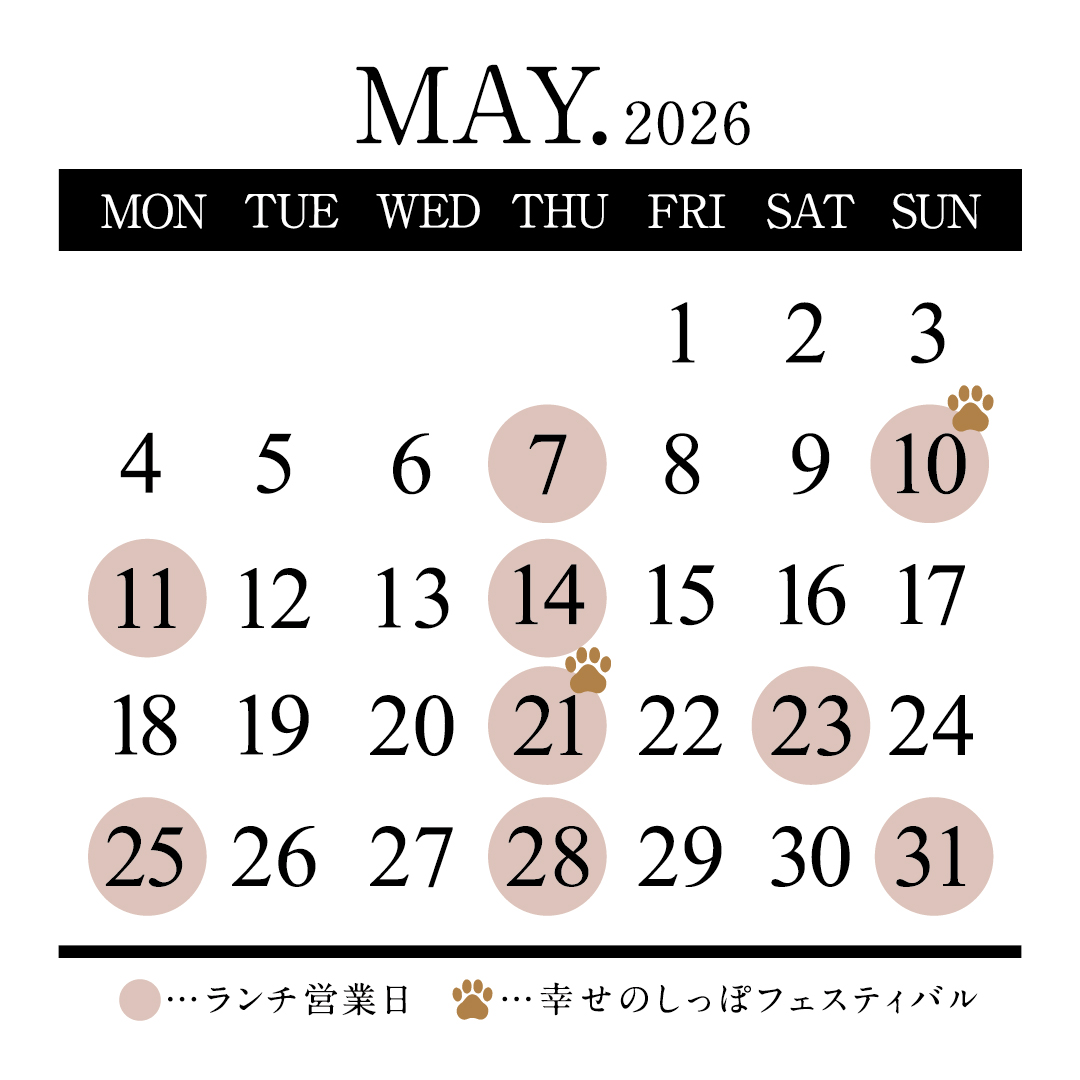 【5月レストラン営業日&幸せのしっぽフェスティバル開催日】