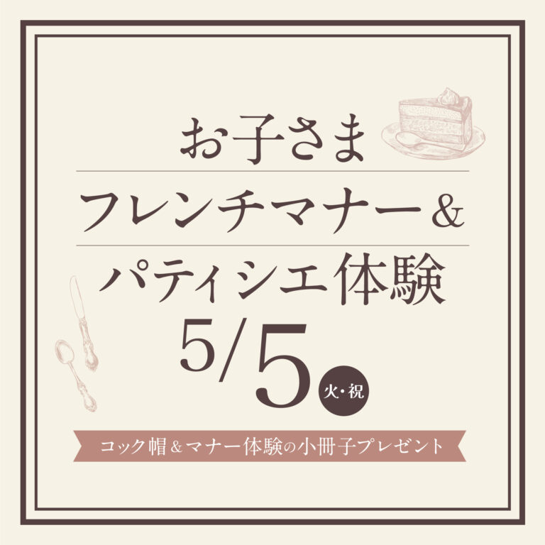 【5月5日・こどもの日限定開催!お子様フレンチ体験&パティシエ体験のご案内】